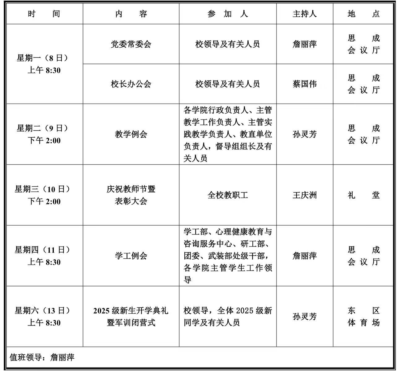 第三周学校活动安排