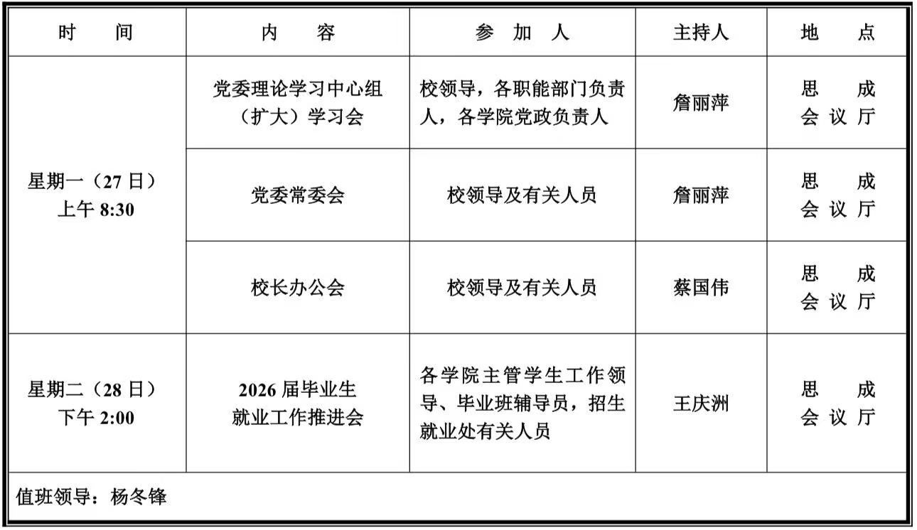第十周学校活动安排