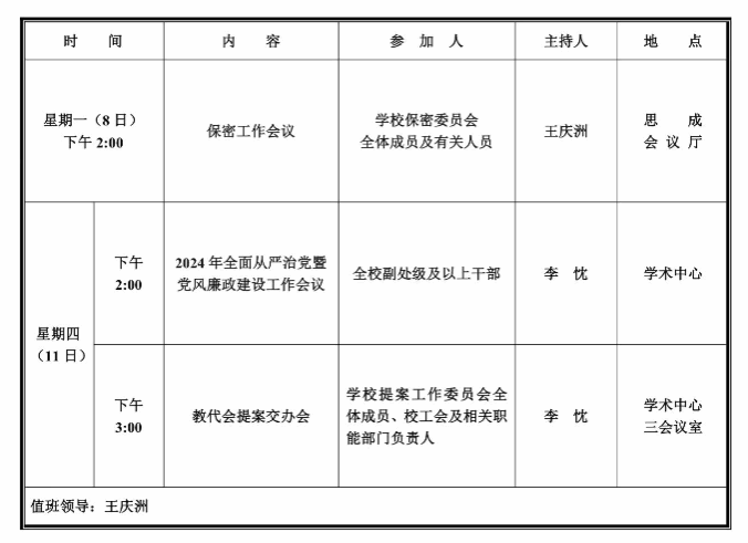 第六周学校活动安排