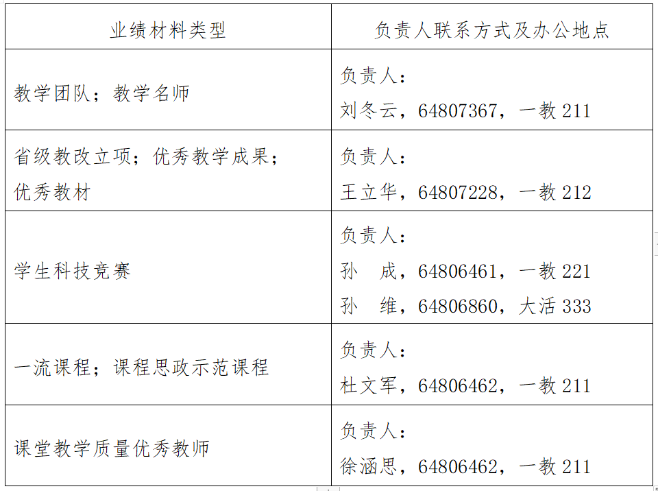 其他未尽事宜请与教务处联系。具体负责教师如下: