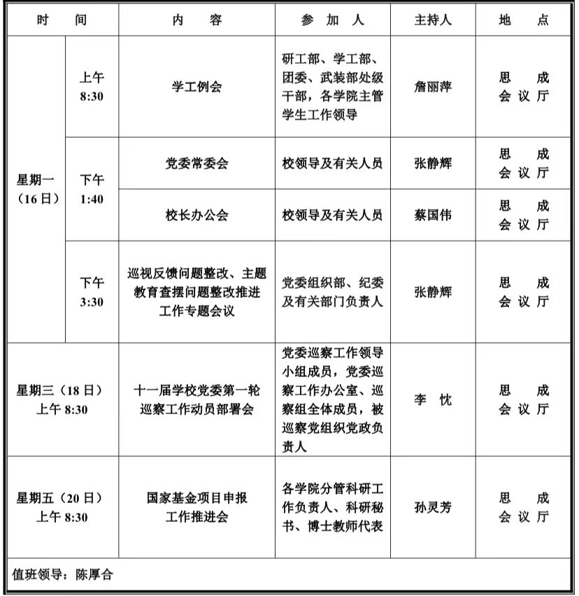 第九周学校活动安排