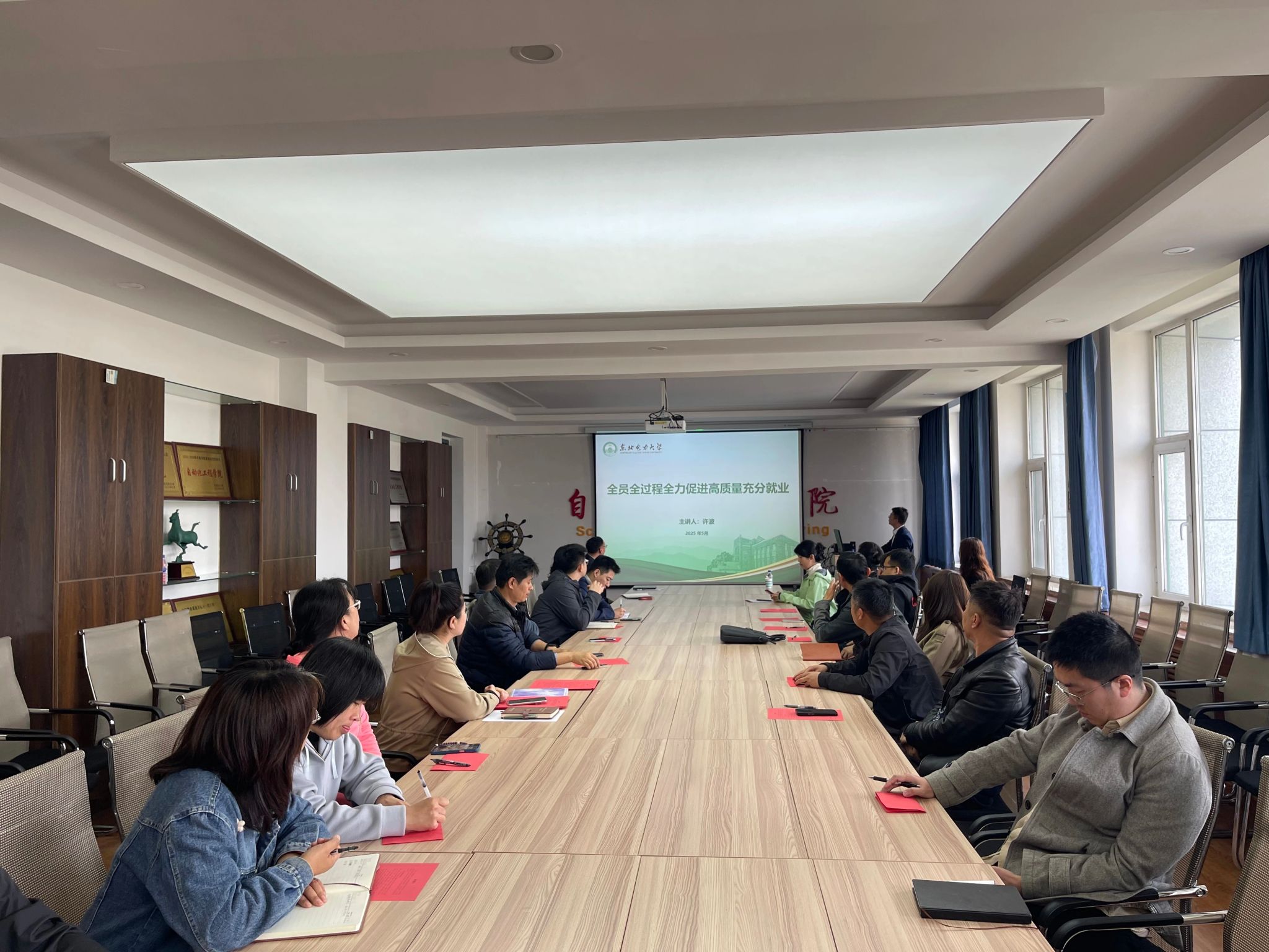 随后,学办主任李丹结合成人影院实际,对就业工作体系的具体细则进行了系统性阐释。她强调,就业工作是一项系统工程,需要全体教职工齐心协力、协同配合,将就业工作贯穿教育教学全过程,把就业指导融入人才培养各环节,引导学生树立正确的就业观和择业观,助力学生在就业市场中找准定位、实现高质量就业。