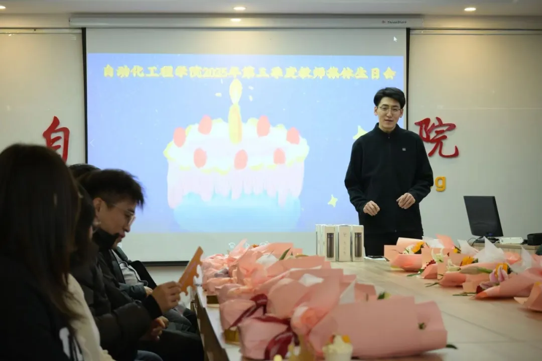 于主教430会议室举行2025年第三季度教师集体生日会。学院本季度过生日教师齐聚一堂、共庆生辰,活动由学院分工会主席谢天祥主持。