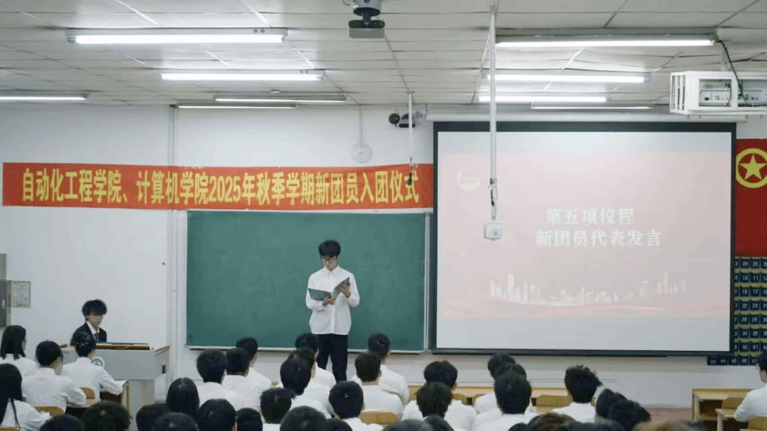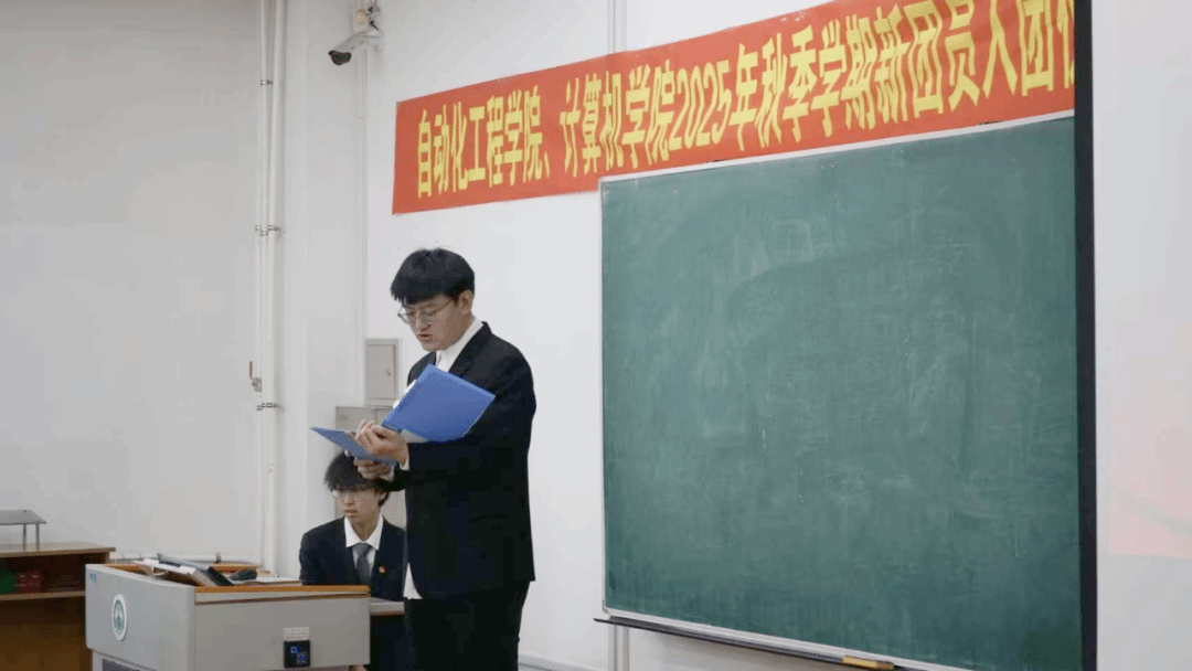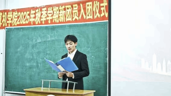 计算机学院团委副书记(学生)岳瑞郑重宣读2025年秋季学期新发展团员名单,每一个名字都承载着梦想与希望,代表着又一批优秀青年正式加入中国共产主义青年团。