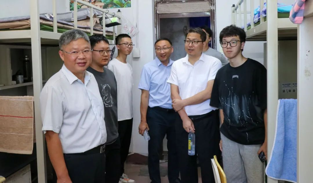 党委书记王俊成,院长曹生现,党委副书记马崇升,副院长侯一民、顾大可一行深入新生宿舍开展走访慰问,并与同学们亲切交流。