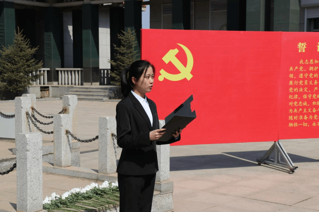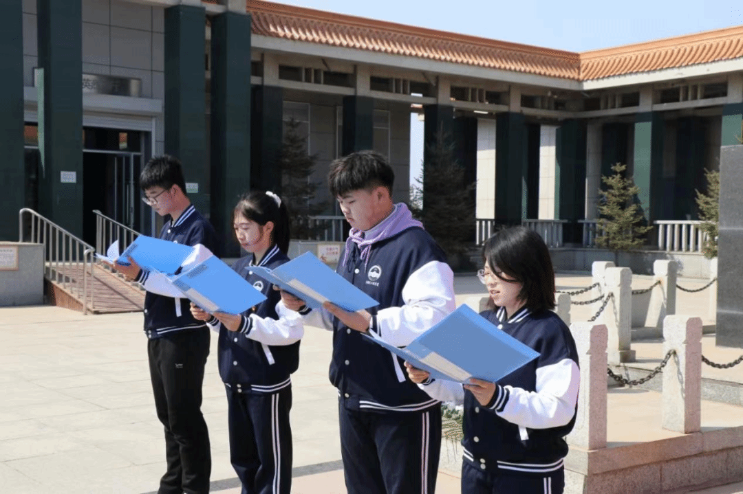 在革命烈士纪念馆前,四名入团积极分子代表进行了以“铭记历史,缅怀先烈”为主题的朗诵,讲述了革命先烈们在东北抗联、抗美援朝等一系列重要战役中的冲锋陷阵、誓死坚守,共同表达了对革命先烈的深深敬意与悼念。作为新时代的青年,我们要以坚定的信念,弘扬爱国主义精神,坚守初心,牢记使命,矢志不渝地追寻先辈足迹,传承革命精神,让红色基因在心中生根。