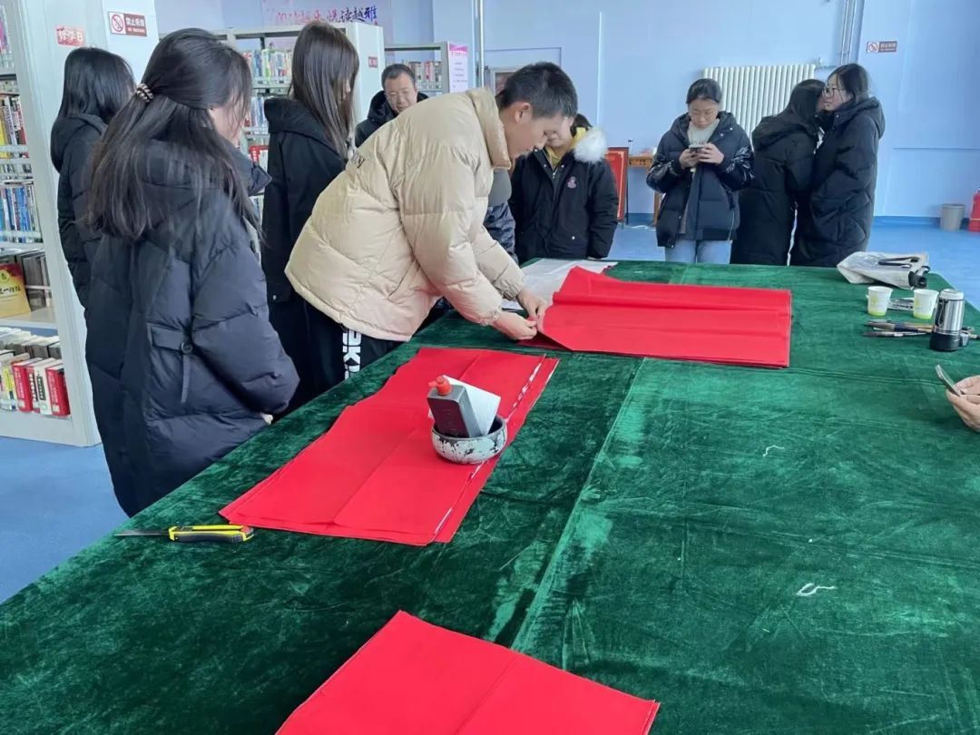 志愿服务期间进行日常的值班和书籍的管理,负责为读者讲解自助借书的流程和借书机器的使用,方便进行书籍的查找,提供安静的读书环境。在志愿服务期间参与了蔚县图书馆举办的“笔墨迎新春 书香过大年”写春联送祝福活动,在活动中,我们与书法家老师齐聚一堂,以写福字传递温暖,与大家分享介绍了春节习俗,并邀请书法家老师现场为大家教学指导书法,一个个福字跃然纸上,让传统焕发时代光彩,让文化与年味融合。为广大读者和居民送去了浓浓的节日祝福和温暖。